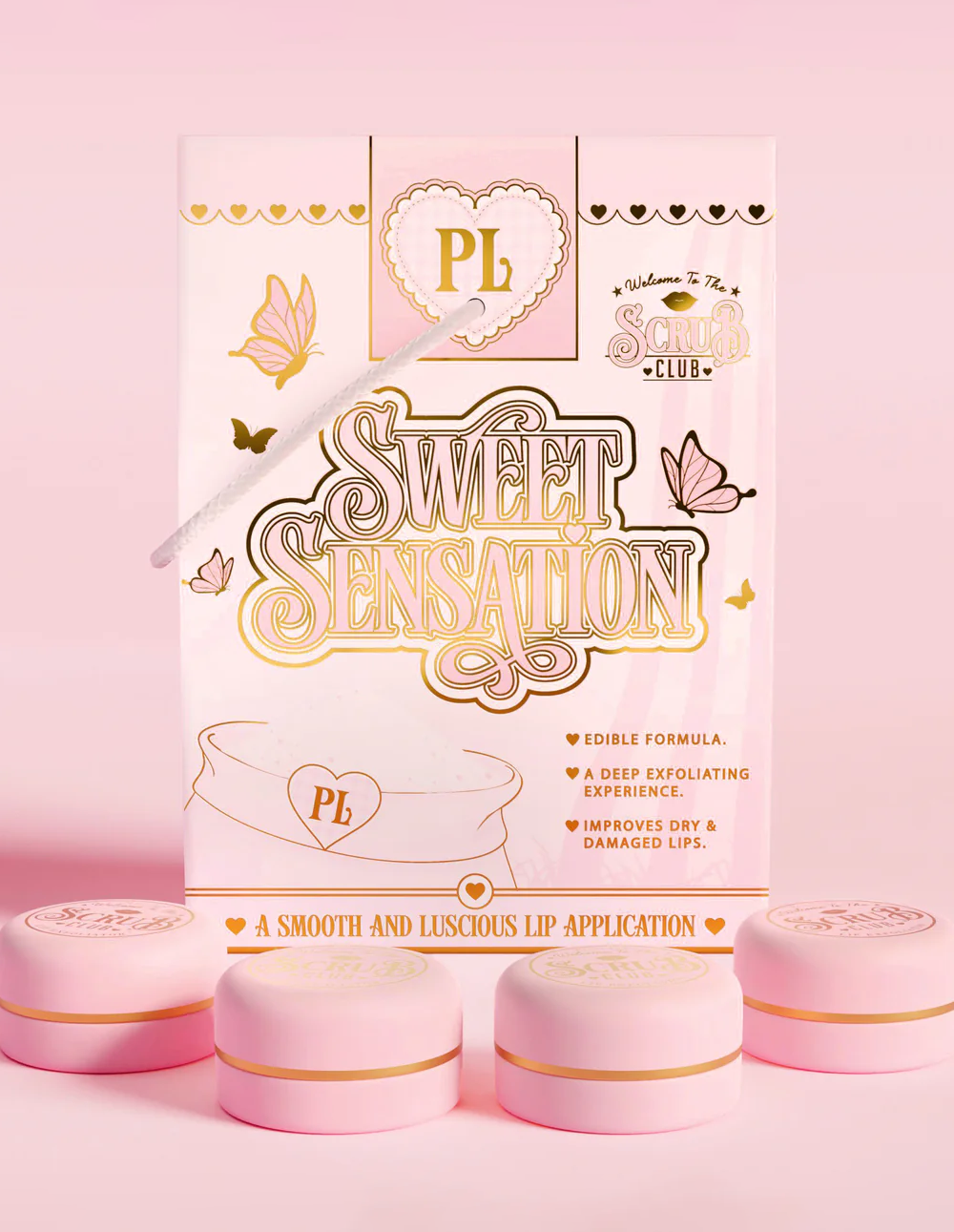 Introducing the Sweet Sensation Sugar Lip Scrub Bag, a selection of 4 lip scrubs in brand new unreleased flavours to match the launch of our Dreamy & Creamy Milk Cartons. Banana Cream Pie, Strawberry Shortcake, Cookies & Cream, Peanut Butter Brownie.